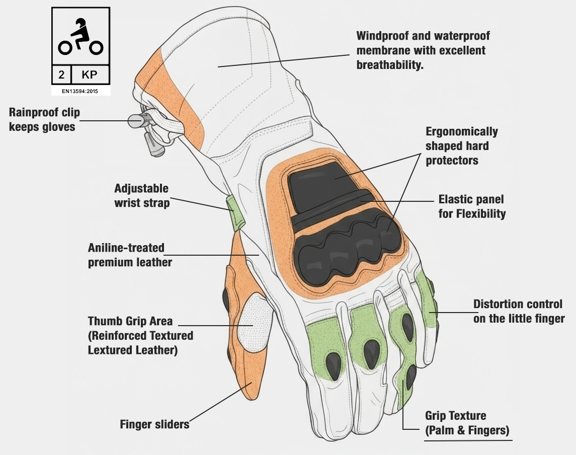 Denna märkning visar att Blackops Arctic uppfyller den högsta säkerhetsstandarden för motorcykelhandskar – CE Level 2 enligt EN 13594:2015. Certifieringen garanterar att handsken har genomgått noggranna tester för slagmotstånd, slitstyrka och rivhållfasthet, vilket ger ett bekräftat skydd mot extrema påfrestningar under körning.
