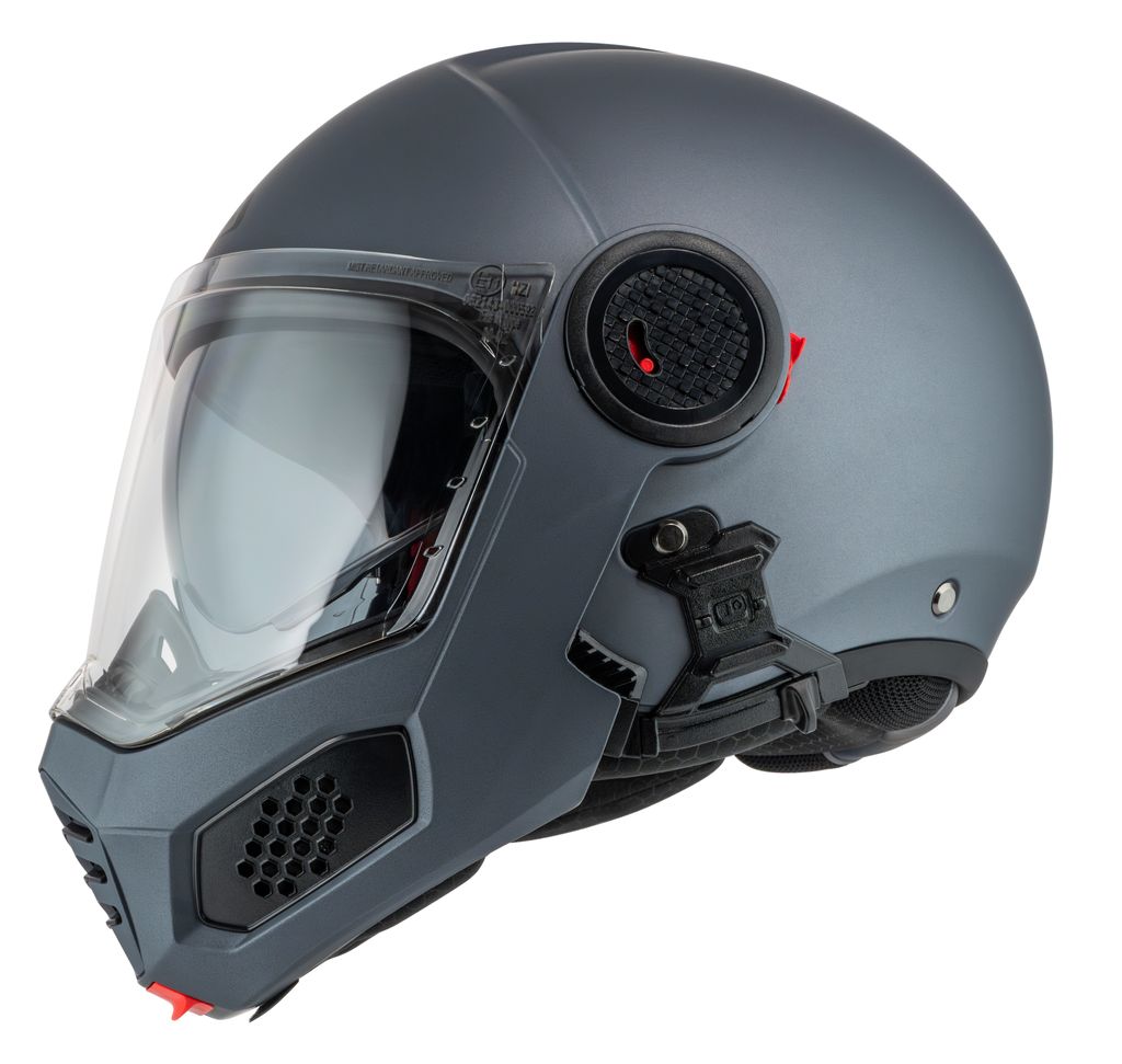 Tack vare dubbel P/J-certifiering enligt ECE 22.06 kan du köra tryggt både med hakpartiet stängt på motorvägen eller uppfällt i stadstrafik.