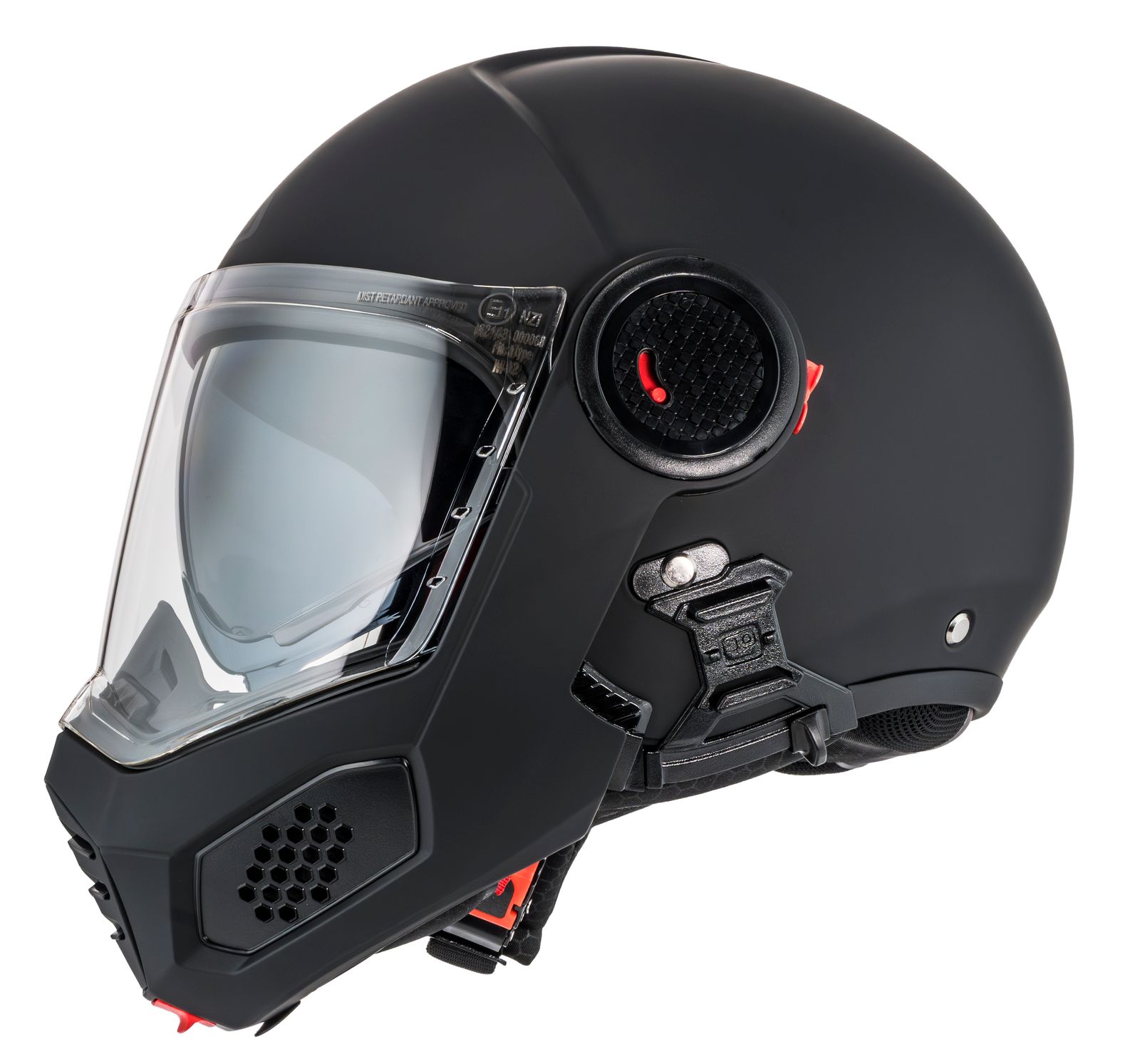 Tack vare dubbel P/J-certifiering enligt ECE 22.06 kan du köra tryggt både med hakpartiet stängt på motorvägen eller uppfällt i stadstrafik.