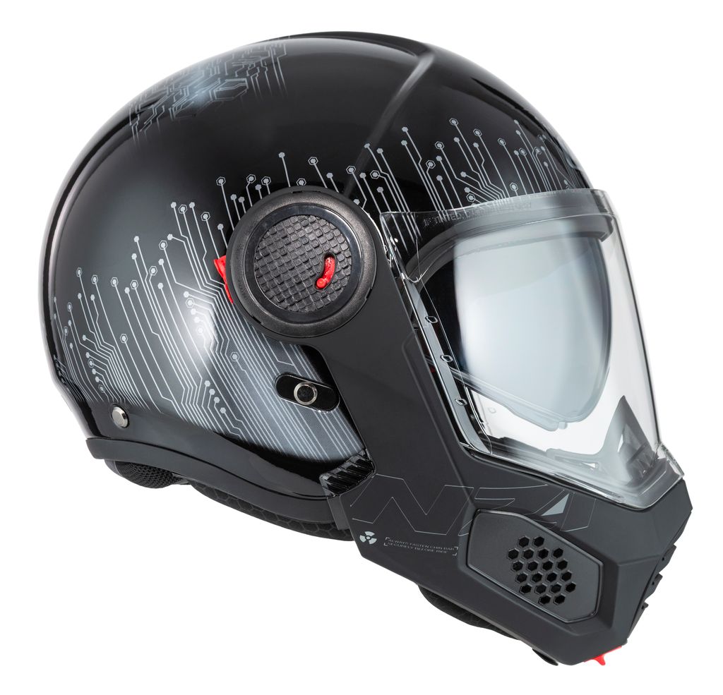 Med ett enkelt knapptryck fälls hakpartiet upp, vilket ger bättre ventilation och smidighet vid stopp eller lugn stadskörning.