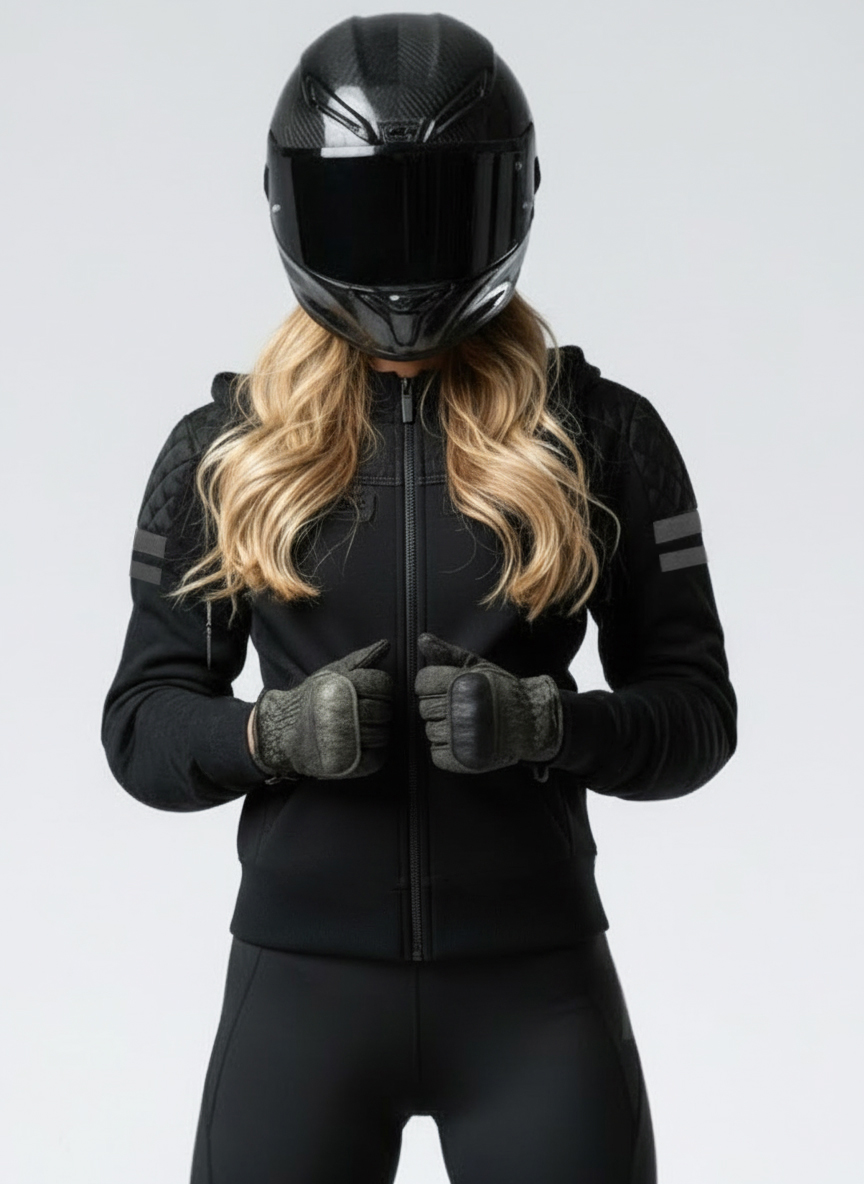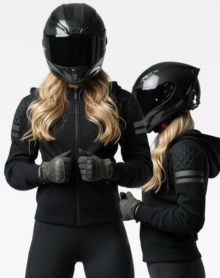 Dark Titan Kevlar Hoodie är framtagen för motorcyklister som vill kombinera en stilren vardagslook med avancerat skydd. Med sin slimfit-design, quiltade paneler och Kevlar®-förstärkningar på de mest utsatta ställena får du både trygghet och komfort – lika användbar på motorcykeln som i vardagen.