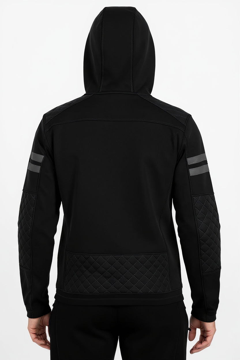 På nedre delen av ryggen finns en quiltad panel med dekorativ stitching som ger jackan en klassisk och sofistikerad look. Mönstret förstärker den urbana och avslappnade stilen och ger samtidigt extra struktur åt plagget. En premiumdetalj som gör att hoodien ser exklusiv ut både på hojen och till vardags.