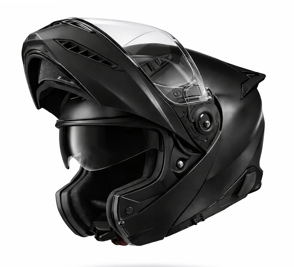 Neo Dark Flip Up tar den traditionella öppningsbara modulhjälmen till en helt ny nivå. Den är utvecklad för både sport- och touringförare och kombinerar modern teknik, hög säkerhet och överlägsen komfort. Oavsett om du kör motorcykel eller scooter är Neo Dark Flip Up den perfekta följeslagaren på varje resa.