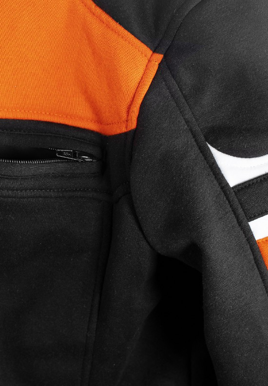 Classic Retro HD-tröja, som både fungerar som jacka och vanlig tröja. Med sin klassiska bikerdesign och orangea detaljer, är detta en tröja som kommer att sticka ut på vägen. Men det är inte bara utseendet som imponerar - denna hoodie har också högsta säkerhet i åtanke.